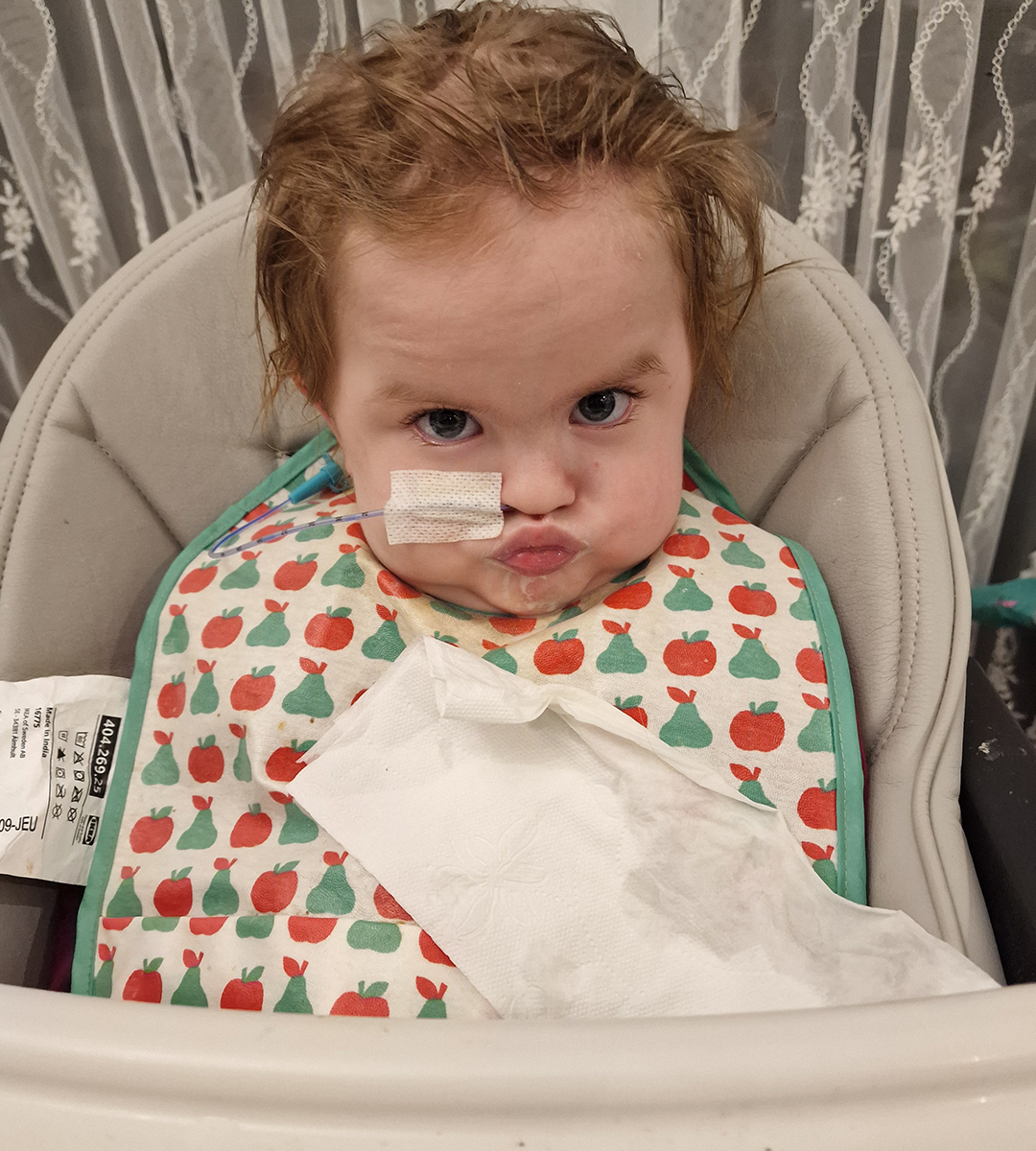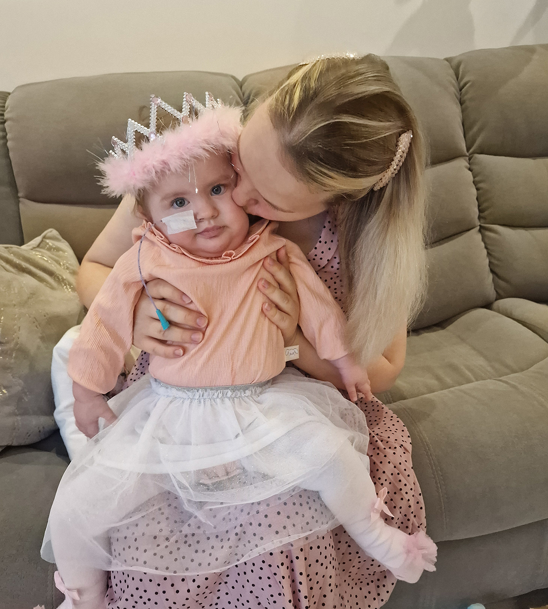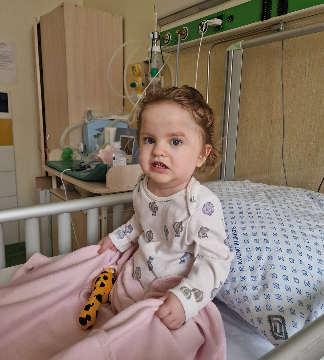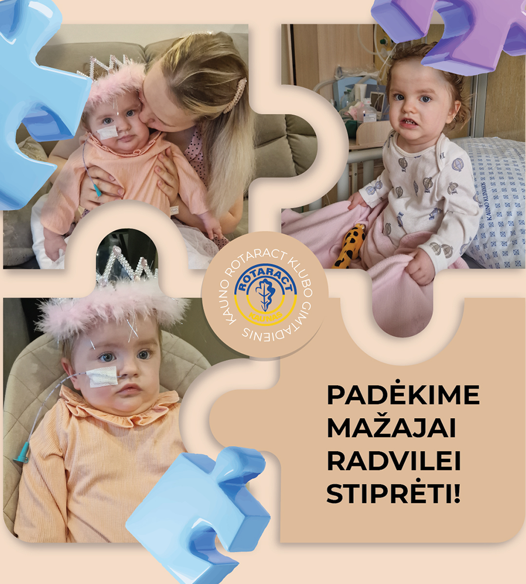 Radvilė – beveik 2 metų mergaitė, gimusi išnešiota, bet nuo pat pirmų gyvenimo akimirkų turėjusi sunkumų: neįstengė pati kvėpuoti, judėti ir valgyti. Jai nustatyta sunki raumenų silpnumo forma – hipotonija, taip pat diagnozuota reta fosforo apykaitos liga – hipofosfatemija.